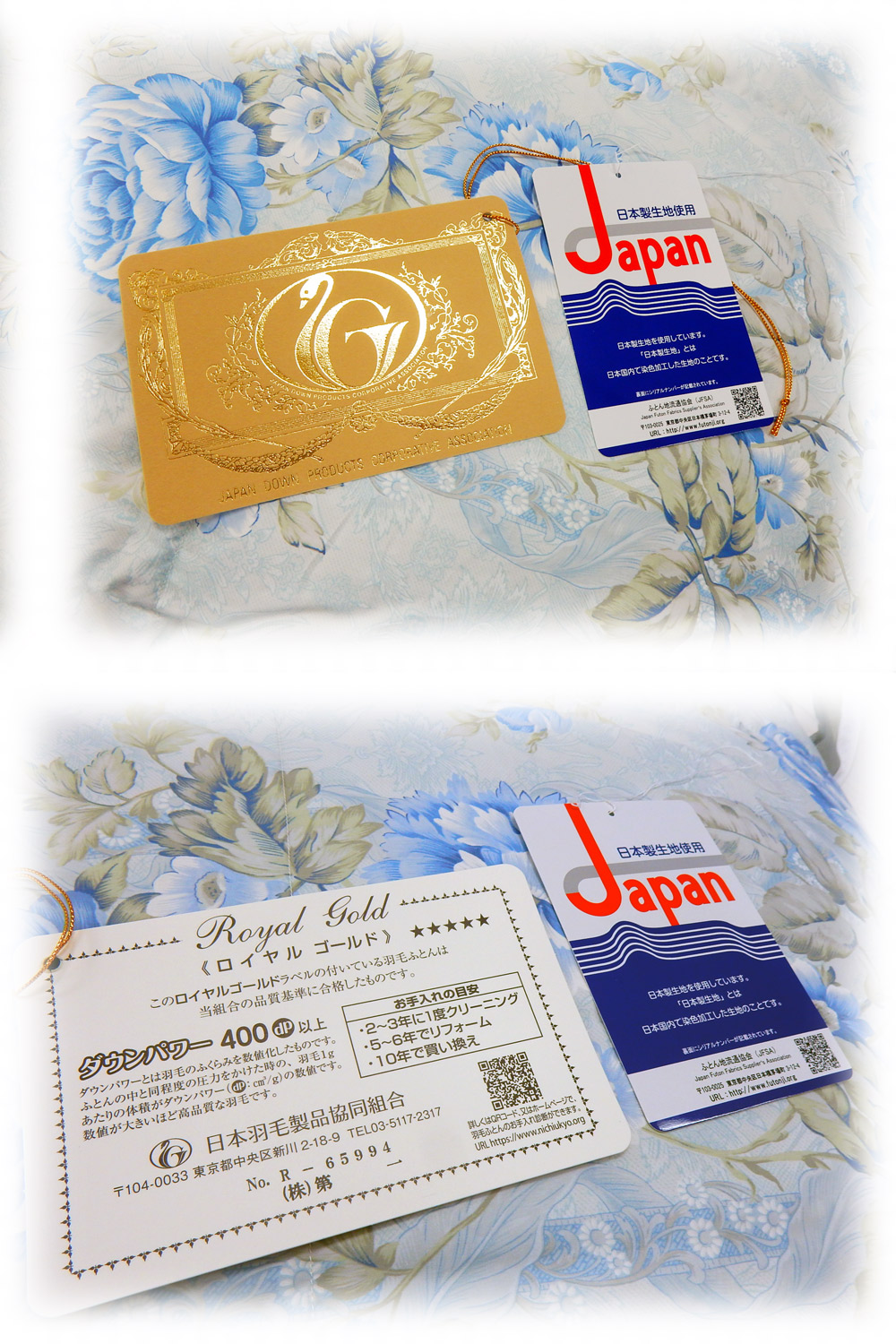 羽毛:ポーランド産ホワイトダックダウン93% 1.2㎏ ロイヤルゴールドラベル ダウンパワー400dp以上