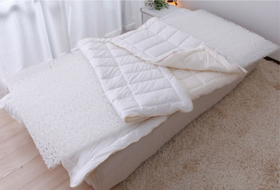側生地の中わたには、洗濯耐久性に優れた「東洋紡コンフォロフト®」と、抗菌防臭・防ダニ性のある「帝人マイティトップ®2 ECO」を使用しています。