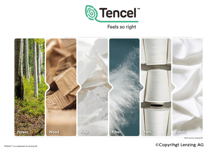テンセル™リヨセル繊維は、 厳格なガイドライン「木材及びパルプに関するレンチング社方針」に基づいて管理された森林の持続可能な木材を原料としています。1 また、レンチンググループが使用する木材とパルプは、持続可能な方法で植林管理された森林から調達しています。 テンセル™リヨセル繊維は、米国農務省(USDA)のBioPreferred®指定を取得しています。 *さらに詳しく知りたい方は、ウェブサイトwww.tencel.comをご覧ください。 サステナブル(持続可能)に管理された木材源に由来。