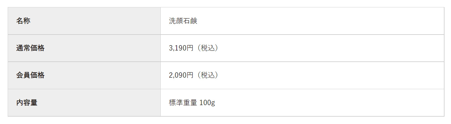 カリ含有石ケン素地、水、グリセリン、アルギン酸Na、ミリスチン酸、パルミチン酸、パーム核脂肪酸、パーム脂肪酸、ラウリン酸、ポリクオタニウム-39、加水分解白子エキス、加水分解DNA-Na、加水分解RNA、DNA-Na、ハネセンナ葉エキス、ヘキサペプチド-42、サピンヅストリホリアツス果実エキス、グリチルリチン酸2K、オリーブ果実油、ホホバ種子油、シア脂、マルトース、マルトデキストリン、ポリクオタニウム-51、ヒアルロン酸Na、シアノコバラミン、クチナシ果実エキス、海シルト、ケイソウ土、ベントナイト、カオリン、プロパンジオール、グルコン酸Na、BG、イランイラン花油、パルマローザ油、オレンジ果皮油、ニオイテンジクアオイ油、ベルガモット果実油、ローマカミツレ花油、ローカストビーンガム、エチドロン酸4Na、ペンテト酸5Na、塩化Na